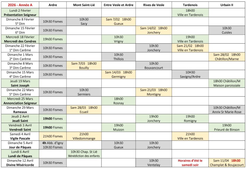 MESSES DOMINICALES : Du 2 Février au 12 Avril 2026